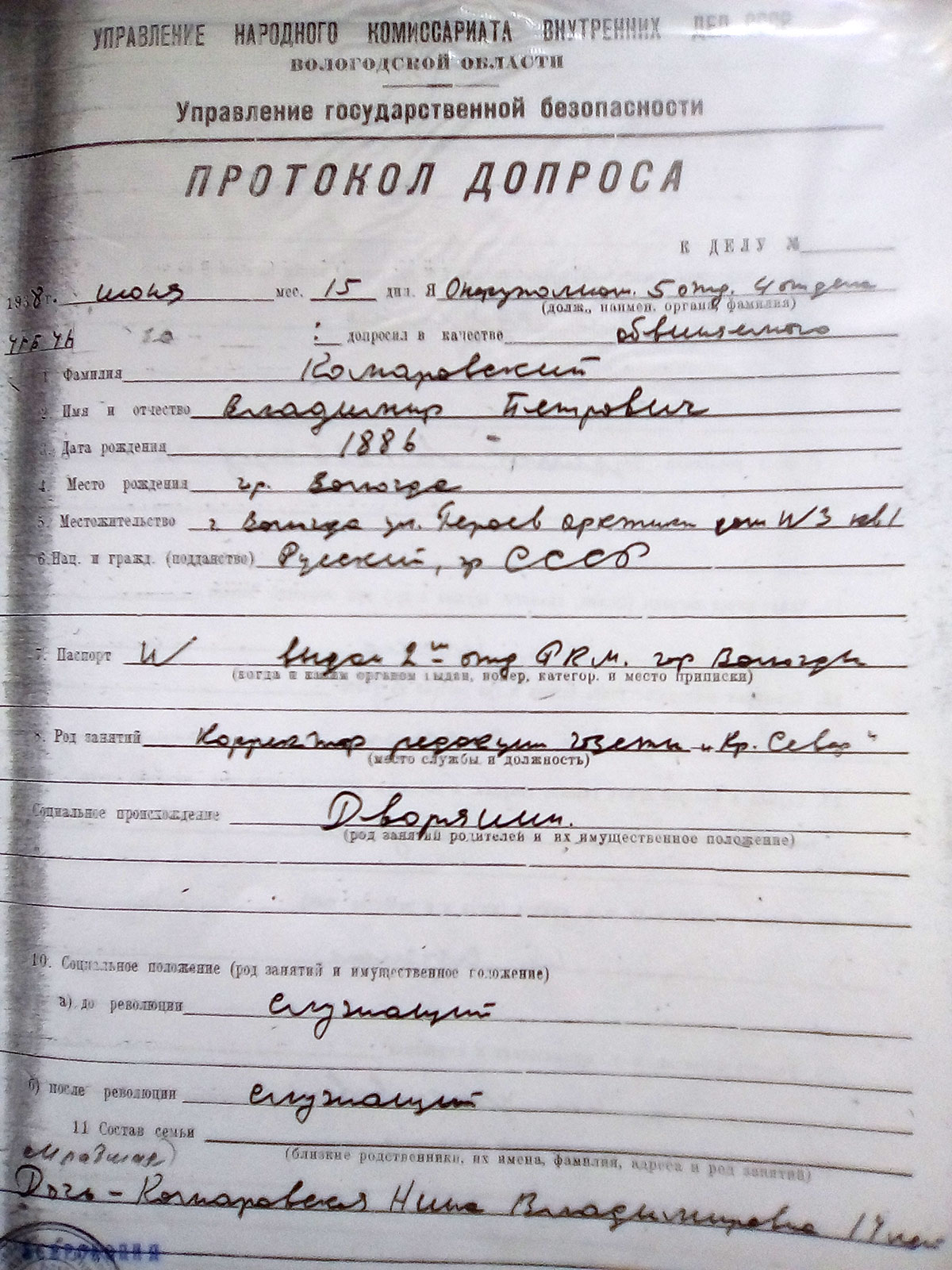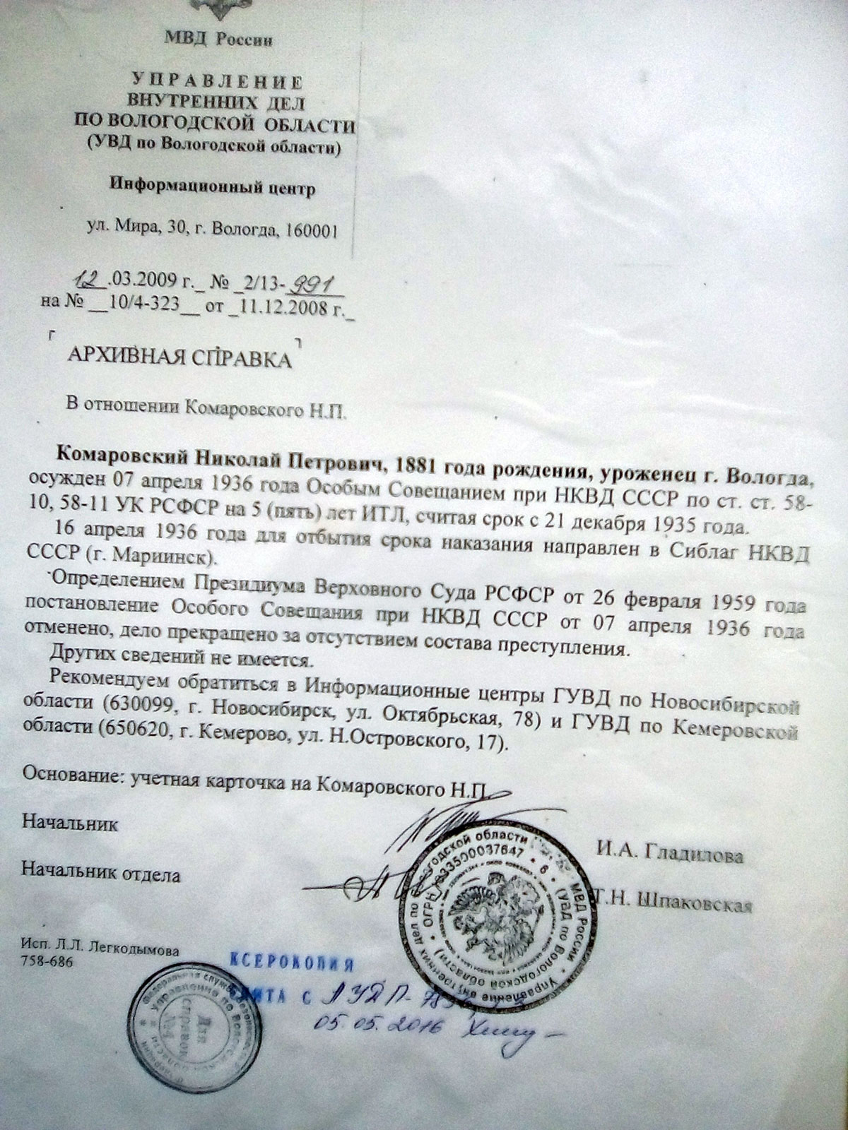 О родословной семей Соколовых, Алексеевых, Громовых (дер. Андроново, Власьево, Калинкино, с. Куркино), а также семьи Полянских из д. Волково Вологодского р-на.