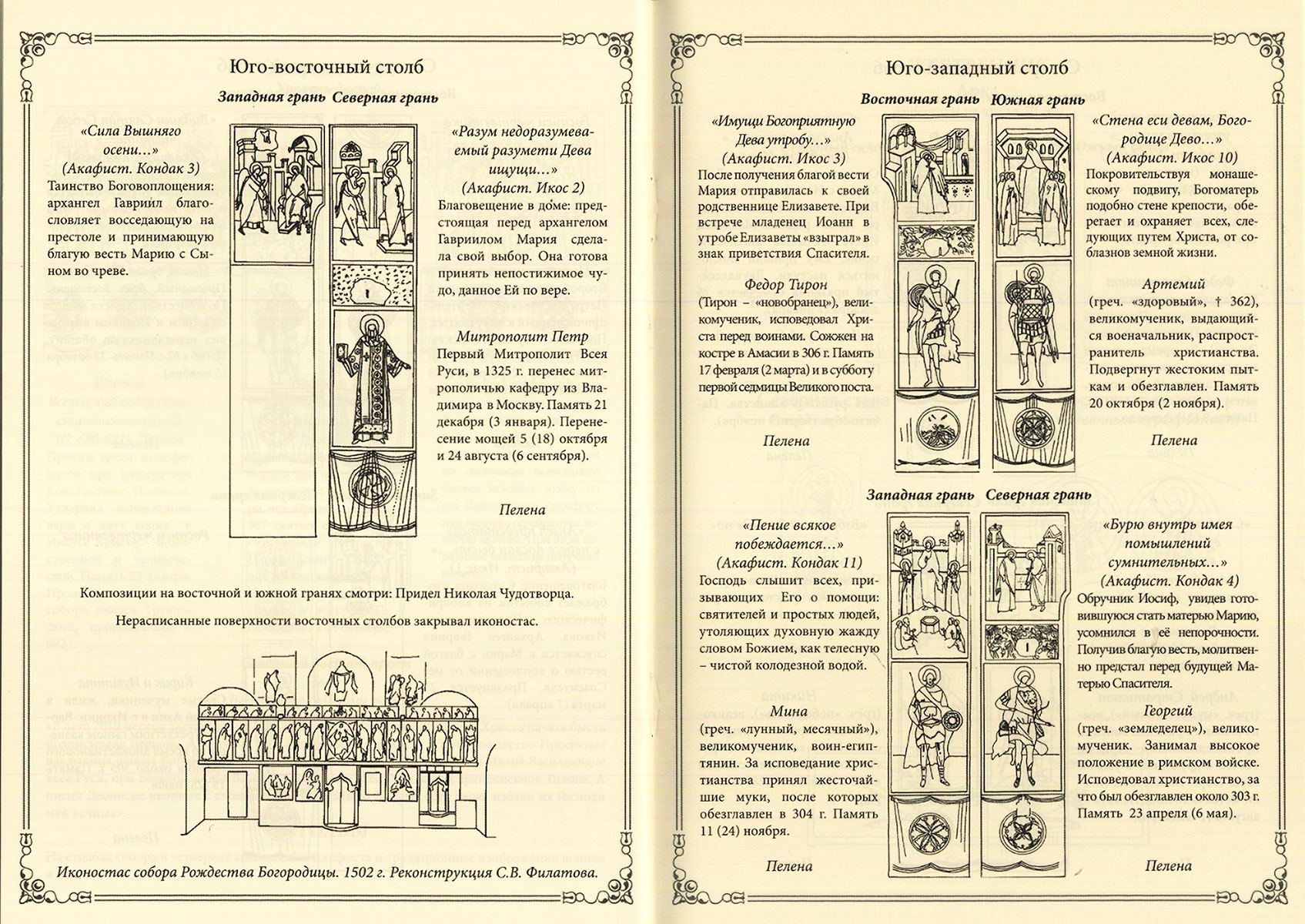 Путеводитель по композициям стенописи Дионисия в соборе Рождества Богородицы Ферапонтова монастыря, 1502 г. / Федер. гос. учреждение культуры "Кирилло-Белозер. историко-архитектур. и художеств. музей-заповедник", Фил. "Музей фресок Дионисия"; [авт.-сост. Е. Н. Шелкова; рис.: Д. П. Ятвицкая]. - Ферапонтово [Вологод. обл.] : Музей фресок Дионисия : Вологжанин, 2005. - [39] с. : ил.