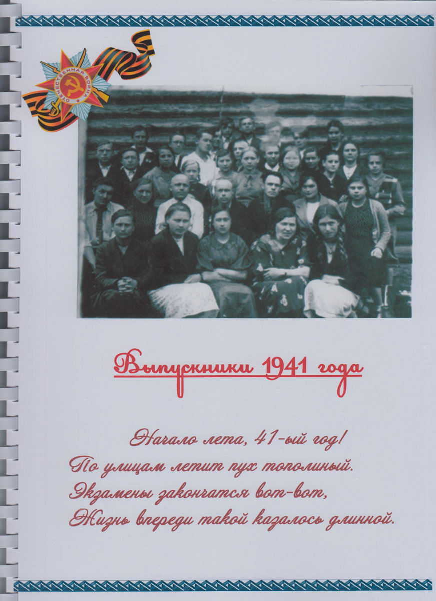 В книге собрана информация, которой нигде больше нет. Письма выпускников с фронта, материалы поездки на место захоронения выпускника школы №1 1941 года, Героя Советского Союза Н.В. Серова, стихи, поэмы и баллады выпускницы 1942 года З.И. Беляевой (Маслаковой), письма выпускников военных лет, переданные школьникам во время встреч, посвященным юбилеям школы, публикации в районной газете «Ленинский путь», «Наша жизнь». Выпуск сборника приурочен к 70-летию Победы.