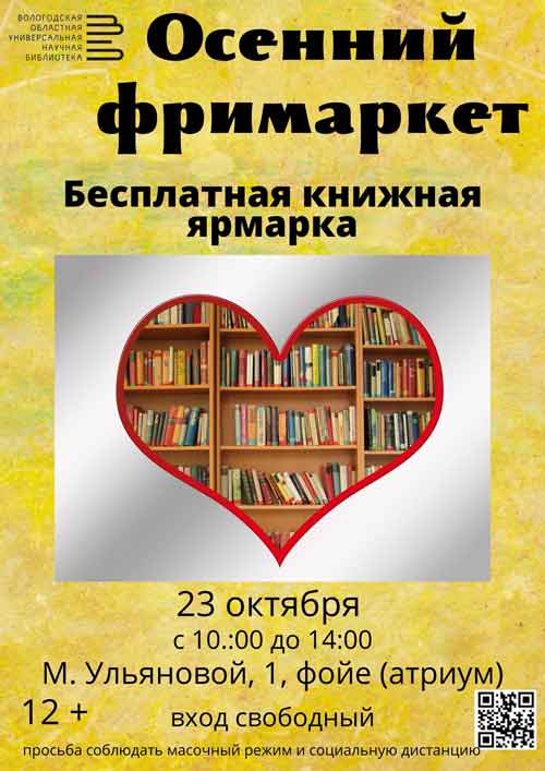 Благотворительная акция «Книжный фримаркет» пройдет в Вологодской областной научной библиотеке в субботу, 23 октября, в фойе 1 этажа (М. Ульяновой, 1).