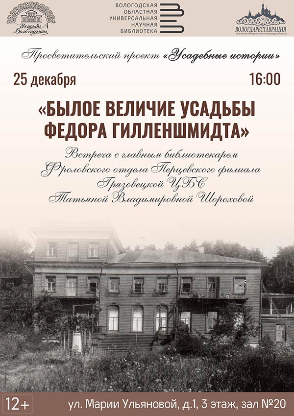 «Былое величие усадьбы Федора Гилленшмидта» – так называется очередная встреча из цикла «Усадебные истории», которая пройдёт в четверг, 25 декабря.