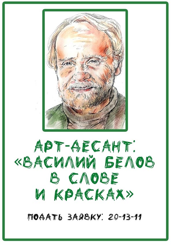 В период с 21 по 25 октября Юношеский центр им. В.Ф. Тендрякова областной библиотеки предлагает юным вологжанам, особенно ученикам 1-5-х классов, принять участие в Беловском арт-десанте: «Белов в слове и красках».