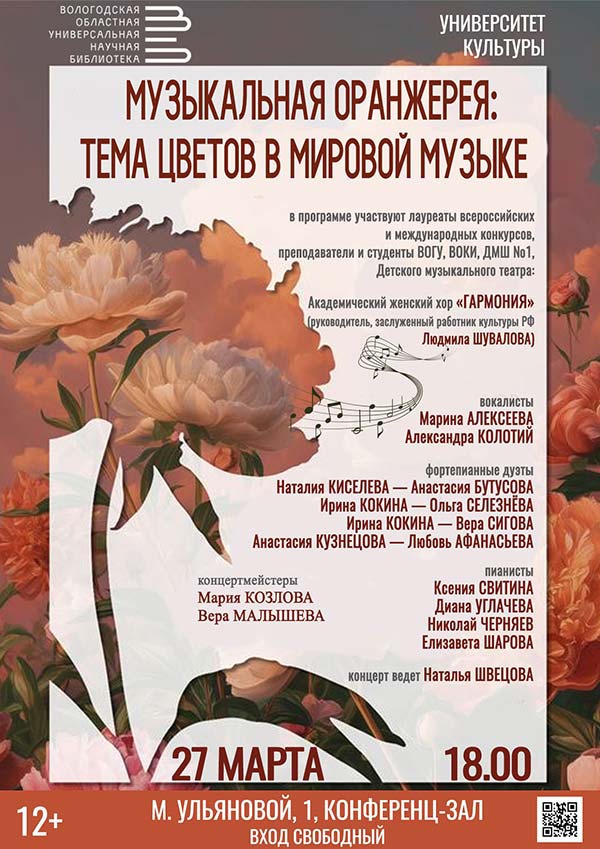 «Музыкальная оранжерея: тема цветов в мировой музыке» – так называется концертная программа, которая будет представлена слушателям в пятницу, 27 марта.