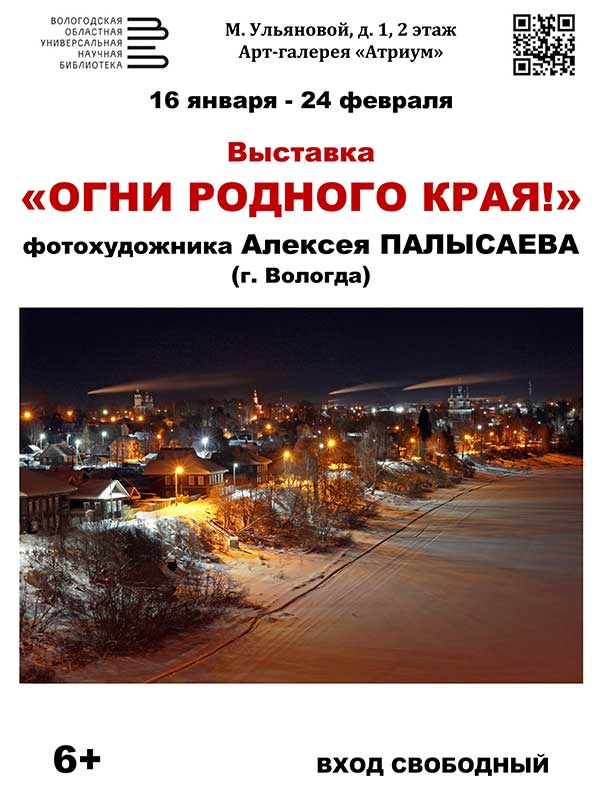 Экспозиция открыта для читателей с 16 января до 24 февраля в арт-галерее «Атриум» Вологодской областной универсальной научной библиотеки (М. Ульяновой, 1, 2 этаж).