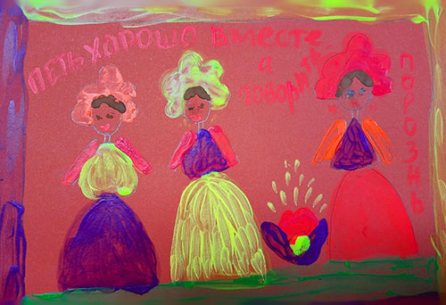 3 место – Котина Анна, 7 лет, 1 «Ж» класс МОУ «Средняя общеобразовательная школа №30», г. Вологда – иллюстрация к пословице «Петь хорошо вместе, а говорить - порознь»;