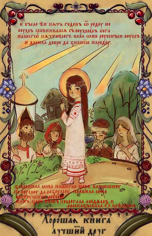 Специальный диплом за верность вологодским традициям – Шилова Ева, 9 лет, МОУ «Средняя общеобразовательная школа №36», г. Вологда – иллюстрация к пословице «Кто в лен одет, доживет до ста лет»;
