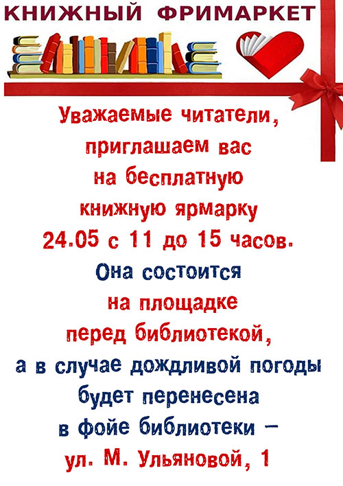 В случае дождливой погоды книжный фримаркет пройдёт в фойе библиотеки.