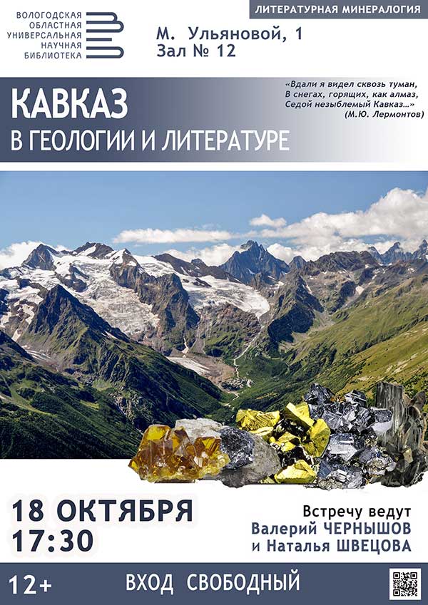 «Кавказ в геологии и литературе» – так называется очередная встреча просветительского проекта «Литературная минералогия», которая состоится в среду, 18 октября.