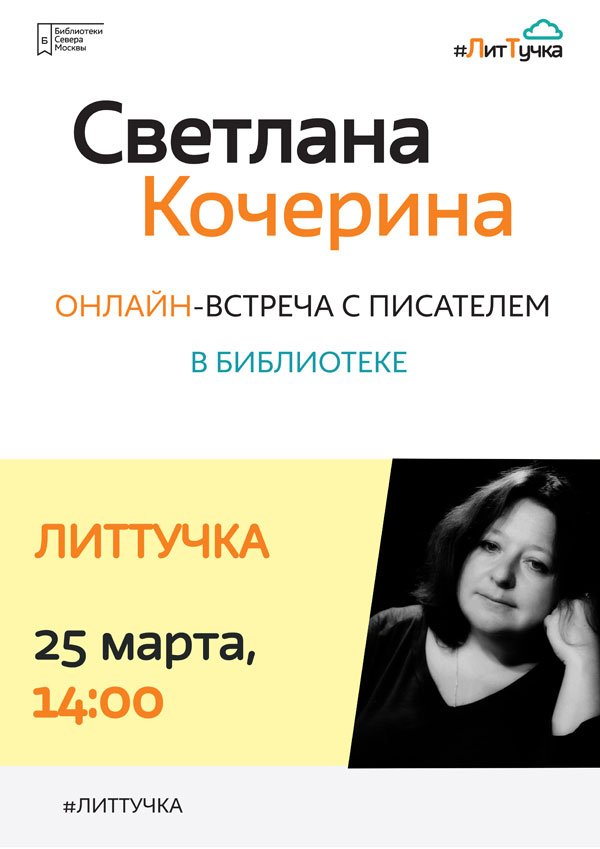 25 марта в 14:00 по московскому времени на международном библиотечном канале bibliomost.ru состоится онлайн встреча с драматургом и ведущей детской литературной студии Светланой Кочериной. Постоянная рубрика, в рамках которой пройдёт встреча называется «ЛитТучка».