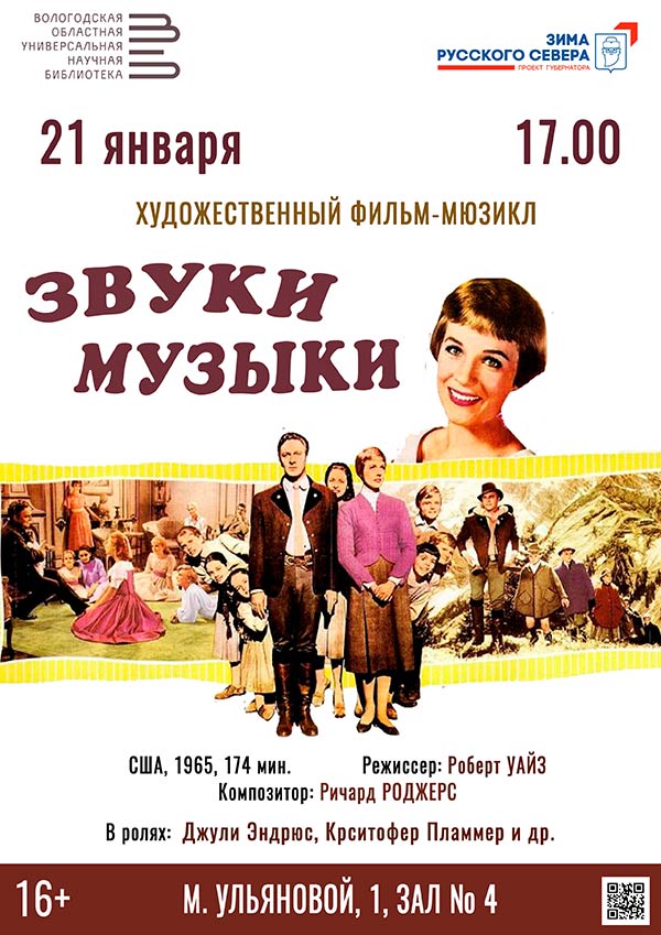 Показ фильма-мюзикла «Звуки музыки» пройдёт в среду, 21 января, в рамках цикла «Музыкальные истории».