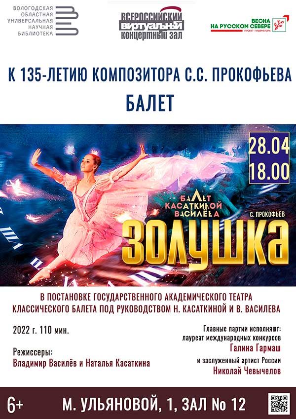 Во вторник, 28 апреля, в честь 135-летнего юбилея выдающегося русского композитора Сергея Сергеевича Прокофьева, зрители увидят видеозапись балета «Золушка» в постановке Государственного академического театра классического балета под руководством Натальи Касаткиной и Владимира Василёва.