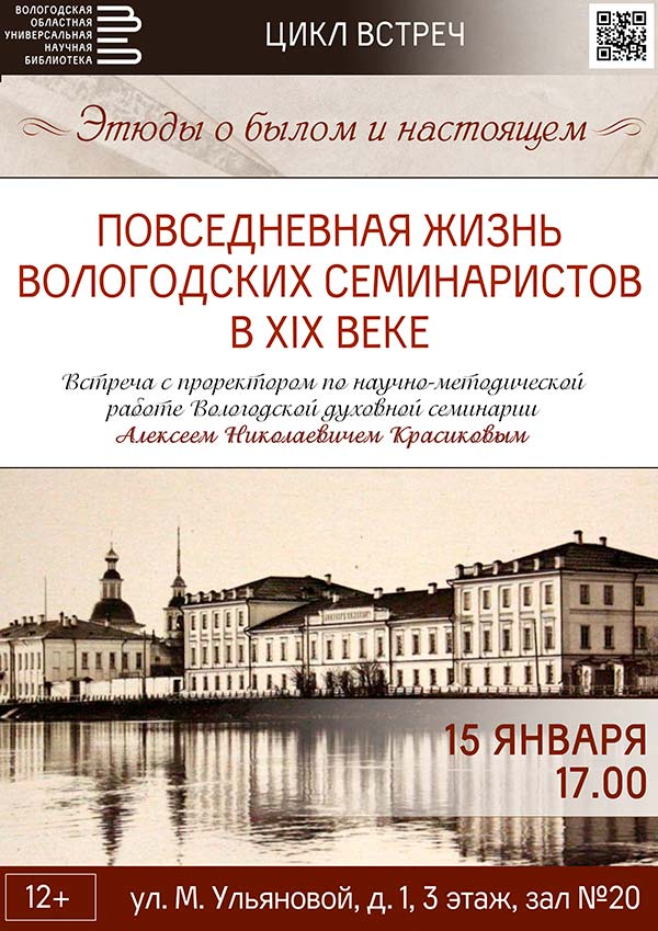 О повседневной жизни воспитанников Вологодской духовной семинарии в XIX веке расскажет гость встречи – проректор по научно-методической работе Вологодской духовной семинарии Алексей Николаевич Красиков.