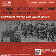 Электронный архив периодики размещен на сайте ВОУНБ в ресурсе «Великая Отечественная война на страницах газет. Исторические хроники Вологодской области». Доступ к нему свободен для всех пользователей сети Интернет: https://www.booksite.ru/gazety-1941-1945/index.html Поиск изданий осуществляется по списку районов Вологодской области и по алфавиту названий газет. В качестве иллюстраций использованы редкие снимки, на которых запечатлена жизнь Вологодской области и ее жителей в годы Великой Отечественной войны.