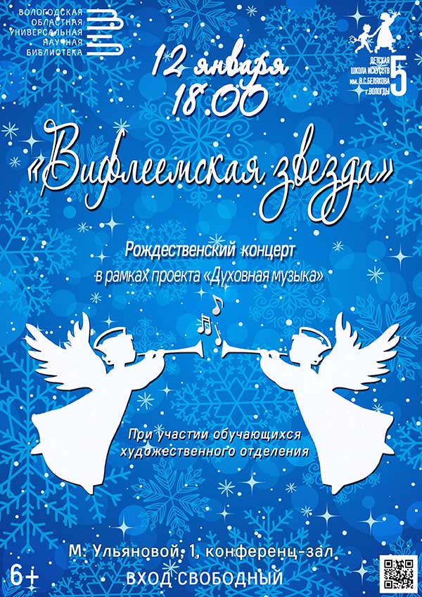 Традиционный рождественский концерт «Вифлеемская звезда», организатором которого выступает Детская школа искусств № 5 города Вологды, пройдет в пятницу, 12 января.