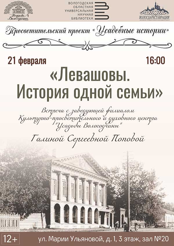 Очередная встреча «Левашовы. История одной семьи» пройдёт в среду, 21 февраля, в рамках просветительского проекта «Усадебные истории».