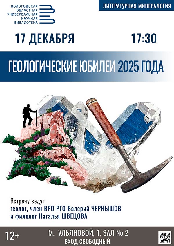 Встреча «Геологические юбилеи 2025 года» проекта «Литературная минералогия» пройдёт в среду, 17 декабря.