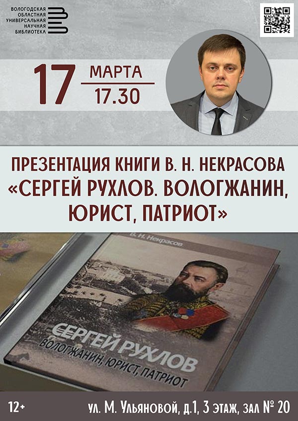 Презентация книги «Сергей Рухлов. Вологжанин, юрист, патриот» состоится во вторник, 17 марта.