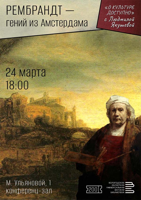 Приглашаем на новую лекцию проекта «О культуре доступно», посвящённую художнику-новатору, опередившему время, – Рембрандту Харменсу ван Рейну.