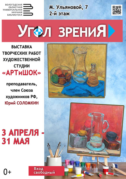 Вологодская областная универсальная научная библиотека приглашает всех желающих посетить выставку художественных работ студии живописи «АРТиШОК». Открытие состоится 3 апреля в 13.00 по адресу М. Ульяновой, 7, 2-й этаж (галерея «Афанасьевский променад»).