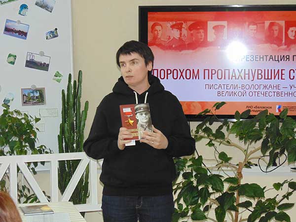 На средства гранта была создана передвижная выставка из 10-ти планшетов, посвященных десяти вологодским писателям, участникам Великой Отечественной войны - танкисту Сергею Орлову и зенитчику Сергею Викулову, сапёру Валерию Дементьеву и связистке Капитолине Большаковой, военному корреспонденту Александру Яшину и сыну полка Михаилу Сопину, рядовому пехотинцу Ивану Полуянову и разведчику, капитану Константину Коничеву, связисту Владимиру Тендрякову и командиру роты, старшему лейтенанту Владимиру Калачеву, павшему смертью храбрых на Синявинских высотах.