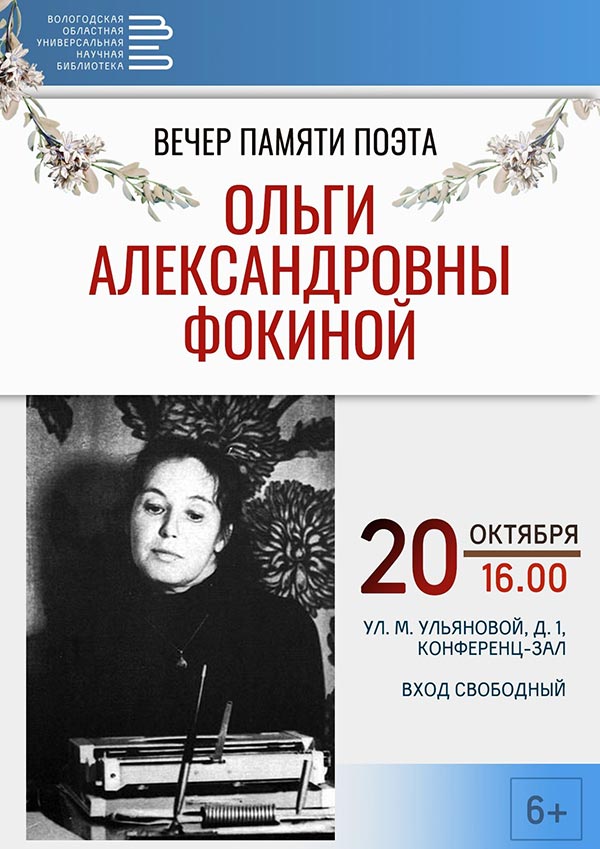 Вечер памяти поэта Ольги Александровны Фокиной состоится в воскресенье, 20 октября.