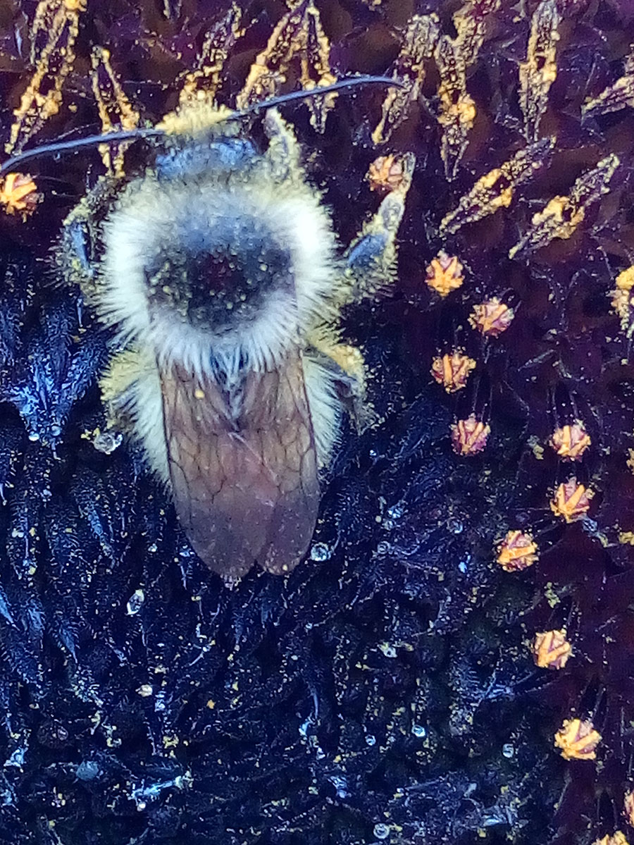 3. Был жаркий августовский день. Скучно... Решил побродить по саду, но ничего занимательного не нашёл. И вдруг в какой-то момент мой взгляд остановился на подсолнухе, на котором сидел шмель. Как бы разглядеть его поближе? Шмель пытался достать нектар из длинных пестиков-трубочек цветка. Долго я наблюдал за этим тружеником... Единственное, о чём сожалел в этот момент: почему не захватил с собой фотоаппарат? Шмель, подожди, не улетай, пожалуйста! Решил не терять ни минуты и побежал домой за телефоном. Успел? — Да! Так появился в моей коллекции ещё один удивительный кадр с воспоминаниями пролетевшего лета.
