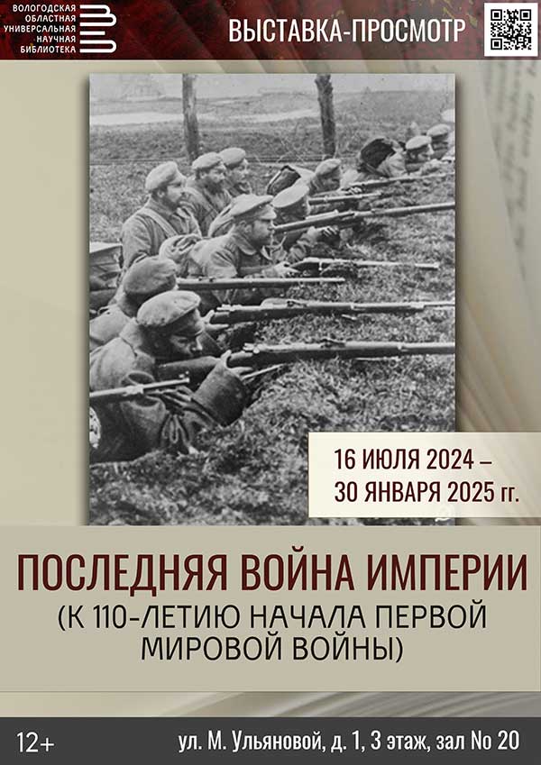 Областная универсальная научная библиотека приглашает на выставку-просмотр «Последняя война империи». Экспозиция посвящена 110-летию начала Первой мировой войны и будет доступна для ознакомления по 31 января 2025 года в зале № 20 по адресу: М. Ульяновой, д. 1.