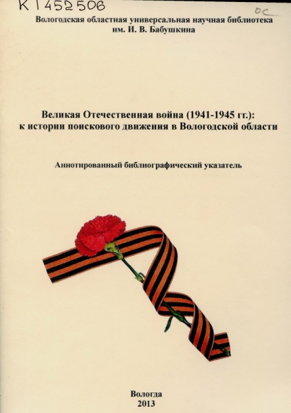 Великая Отечественная война (1941-1945 гг.) : к истории поискового движения в Вологодской области : аннотированный библиографический указатель / Вологод. обл. универс. науч. б-ка им. И. В. Бабушкина ; [сост. М. Р. Петрова ; ред. Р. А. Ковязина ; авт. вступ. ст. С. А. Трифанов]. - Вологда : ВОУНБ, 2013. - 38, [1] с. - ISBN 978-5-904318-10-9