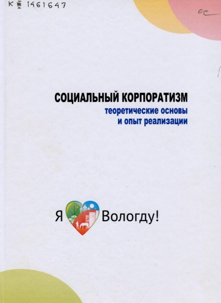 Шулепов Е. Б. Социальный корпоратизм: теоретические основы и опыт реализации / Е. Б. Шулепов ; [отв. ред.: К. А. Задумкин] ; Администрация г. Вологды. - Вологда : ИСЭРТ РАН, 2014. - 152 с. : ил., цв. ил., портр. - (Я люблю Вологду). - ISBN 978-5-93299-265-4