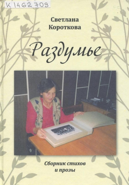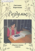 Короткова С. В. Раздумье : сборник стихов и прозы / С. Короткова. - Вологда : Сад-Огород, 2014. - 115, [1] с. : ил., фот. - ISBN 978-5-905713-48-4