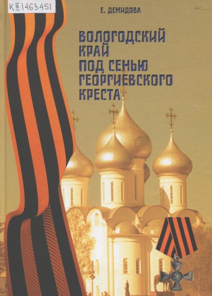 Демидова Е. Л. Вологодский край под сенью Георгиевского креста : вологжане - участники Первой мировой войны, награжденные Георгиевскими крестами : биографический справочник / Е. Л. Демидова ; [предисл.: О. А. Кувшинников ; Правительство Вологод. обл., Департамент культуры, туризма и охраны объектов культур. наследия Вологод. обл., Вологод. обл. универс. науч. б-ка]. - Вологда : Арника, 2014. - 233 с. : ил., портр. - ISBN 978-5-4429-0014-9