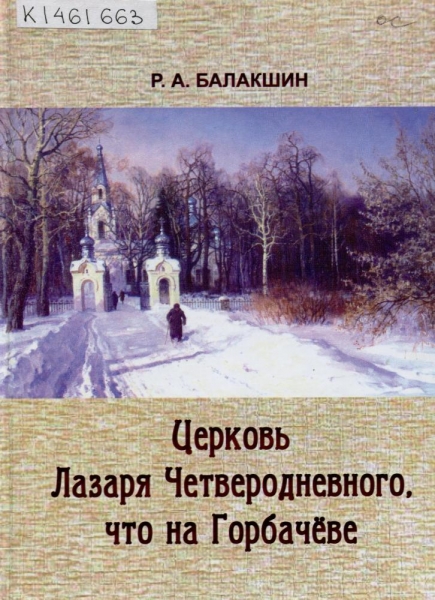 Балакшин Р. А. Церковь Лазаря Четверодневного, что на Горбачеве : (к 125-летию со дня построения) / Р. А. Балакшин. - Вологда : Сад-Огород, 2014. - 108, [3] с., [8] л. ил. - ISBN 985-5-905713-53-8
