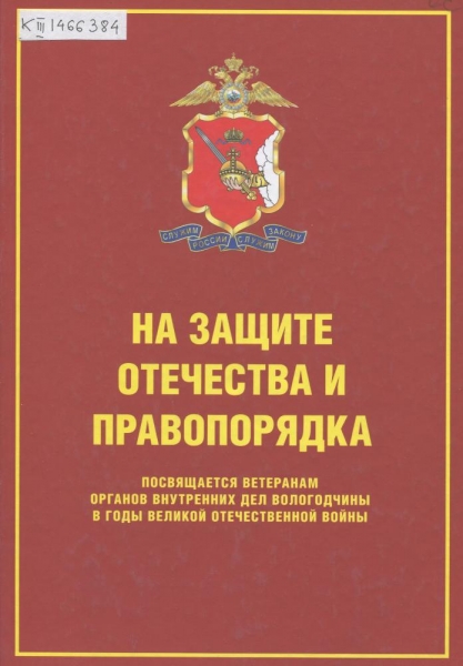 На защите Отечества и правопорядка : [посвящается ветеранам органов внутренних дел Вологодчины в годы Великой Отечественной войны / ред., сост.: Н. В. Коротаевский]. - Вологда : Полиграф-Книга, 2015. - 535 c. : ил., портр., факс. - ISBN 978-5-91967-175-6