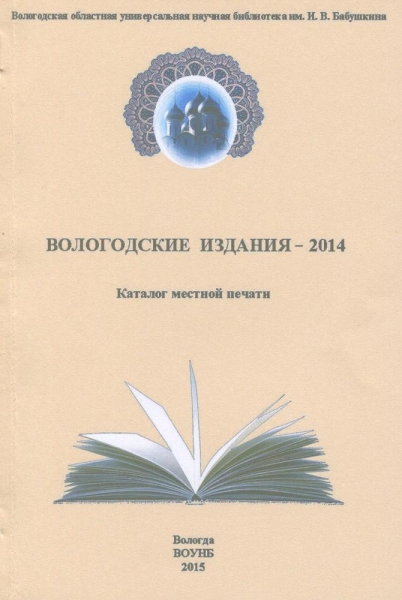 Вологодские издания – 2014 : каталог местной печати / Вологод. обл. универ. науч. б-ка им. И.В. Бабушкина ; [сост., отв. ред. Солодухина Л. Н. ; сост. списка период.изд. Королева С. А.]. – Вологда : ВОУНБ, 2015. – 218 с. : ил. - ISBN 978-5-904318-19-2.