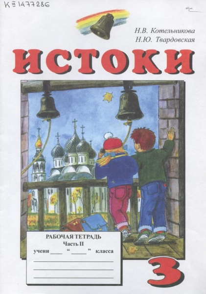 Бандяк О. А. Истоки 2 : рабочая тетрадь : [для 2 класса общеобразовательных учебных заведений]. Ч. 2 / О. А. Бандяк, Н. В. Котельникова ; под общ. ред. И. А. Кузьмина. - 5-е изд. - Москва : Истоки, 2016 (Вологда : Полиграф-Периодика). - 35, [1] с. : ил. - (Социокультурные истоки) (Библиотека Технологической школы бизнеса). - (Социокультурный системный подход к истокам в образовании). - ISBN 5-86073-046-2.