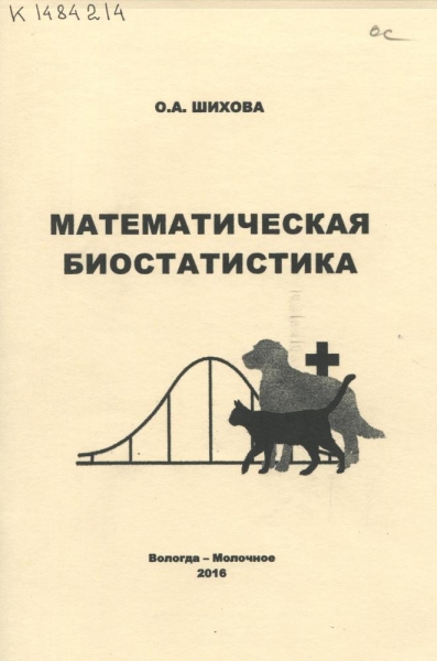 Шихова О. А. Математическая биостатистика : учебное пособие : для студентов специальности 36.05.01 Ветеринария / О. А. Шихова ; М-во сел. хоз-ва Рос. Федерации, Вологод. гос. молочнохоз. акад. им. Н. В. Верещагина. - Вологда ; Молочное : Вологодская ГМХА, 2016. - 89 с. : табл. - ISBN 978-5-98076-215-5.