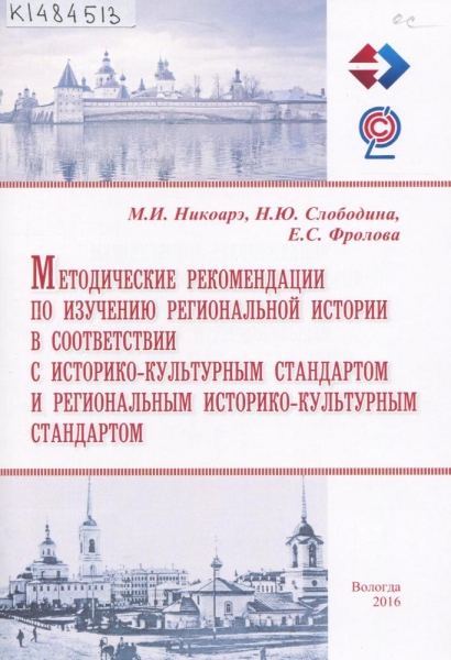Никоарэ М. И. Методические рекомендации по изучению региональной истории в соответствии с историко-культурным стандартом и региональным историко-культурным стандартом / М. И. Никоарэ, Н. Ю. Слободина, Е. С. Фролова ; [науч. ред. О. В. Ильина] ; Департамент образования Вологод. обл., Вологод. ин-т развития образования. - Вологда : ВИРО, 2016 (Череповец : ЧГУ). - 80 с. : табл. - ISBN 978-5-87590-453-0.
