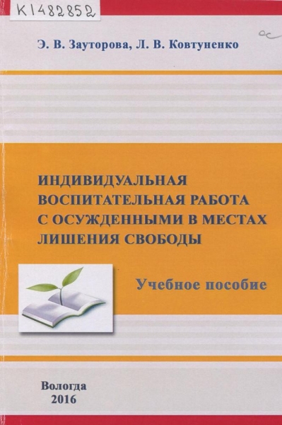 Зауторова Э. В. Индивидуальная воспитательная работа с осужденными в местах лишения свободы : учебное пособие / Э. В. Зауторова, Л. В. Ковтуненко ; Федер. служба исполнения наказаний, Вологод. ин-т права и экономики. - Вологда : ВИПЭ ФСИН России, 2016. - 99 с. - ISBN 978-5-94991-359-8.