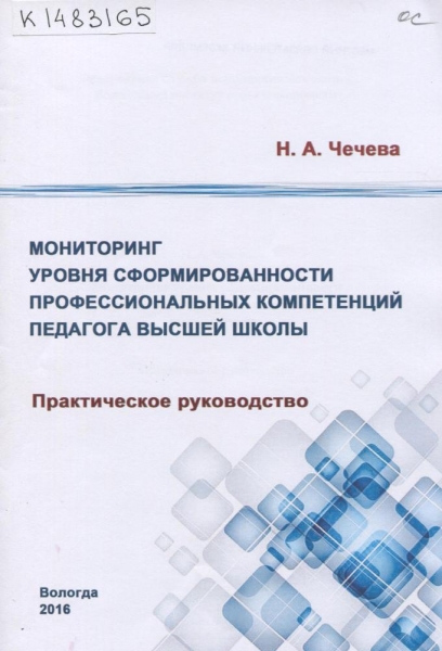 Чечева Н. А. Мониторинг уровня сформированности профессиональных компетенций педагога высшей школы : практическое руководство / Н. А. Чечева ; Федер. служба исполн. наказаний, Вологод. ин-т права и экономики. - Вологда : ВИПЭ ФСИН России, 2016. - 33 с. : табл. - ISBN 978-5-94991-368-0.