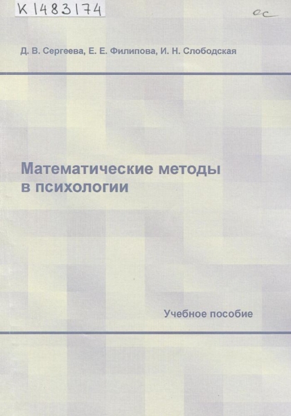 Сергеева Д. В. Математические методы в психологии : учебное пособие / Д. В. Сергеева, Е. Е. Филипова, И. Н. Слободская ; Федер. служба исполн. наказаний, Вологод. ин-т права и экономики. - Вологда : ВИПЭ ФСИН России, 2016. - 83 с. : табл. - ISBN 978-5-94991-364-2.