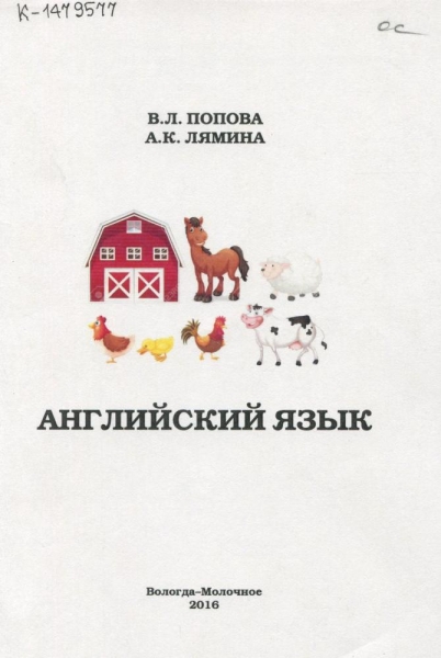 Попова В. Л. Английский язык : учебное пособие для аудиторной и самостоятельной работы студентов по направлению подготовки 36.03.02 «Зоотехния» / В. Л. Попова, А. К. Лямина ; М-во сел. хоз-ва Рос. Федерации, Вологод. гос. молочнохозяйств. акад. им. Н. В. Верещагина, Каф. иностран. яз. - Вологда ; Молочное : ВГМХА, 2016. - 101, [1] с. : ил., табл. - ISBN 978-5-98076-205-6.
