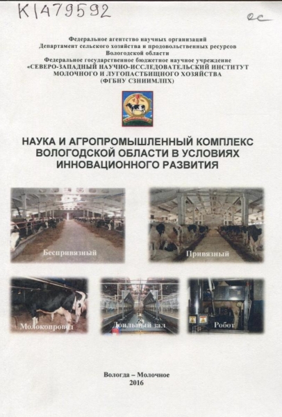 Наука и агропромышленный комплекс Вологодской области в условиях инновационного развития : практическое пособие / [А. В. Маклахов и др. ; под общ. ред. Н. И. Абрамовой] ; Федеральное агентство науч. орг., Департамент сел. хоз-ва и продовольств. ресурсов Вологод. обл., Федеральное гос. бюджет. науч. учреждение «Северо-Запад. науч.-исслед. ин-т молоч. и лугопастбищ. хоз-ва» (ФГБНУ СЗНИИМЛПХ). – Вологда ; Молочное : Вологодская ГМХА, 2016. - 143 с. : ил., табл. - ISBN 978-5-98076-207-0.