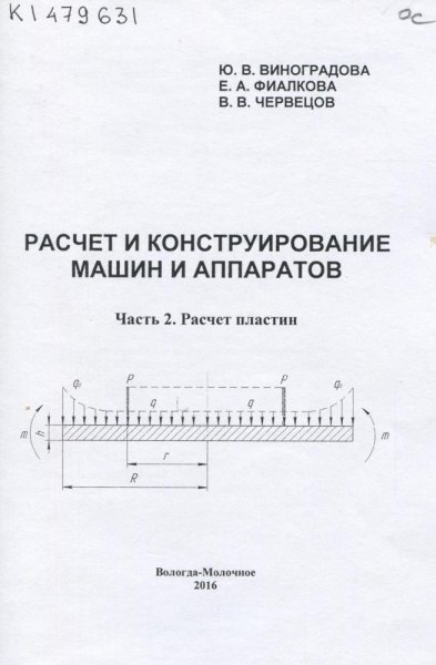 Виноградова Ю. В. Расчет и конструирование машин и аппаратов : учебное пособие для бакалавров по направлению подготовки 15.03.02 «Технологические машины и оборудование». Ч. 2. Расчет пластин / [Ю. В. Виноградова, Е. А. Фиалкова, В. В. Червецов] ; М-во сел. хоз-ва РФ, Вологод. гос. молочнохоз. акад. им. Н. В. Верещагина, Технол. фак., Каф. технол. оборудования. - Вологда ; Молочное : ВГМХА, 2016. - 82 с. : ил., табл. - ISBN 978-5-98076-206-3.