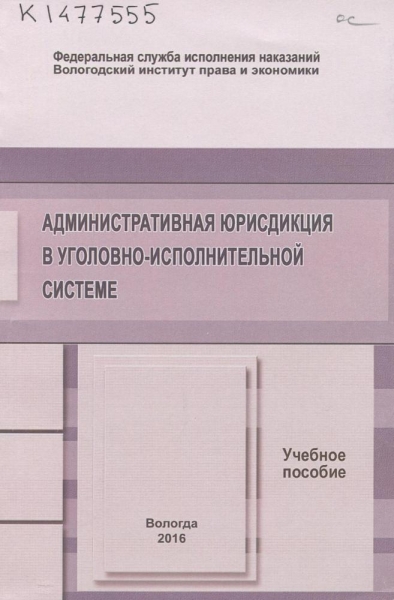 Административная юрисдикция в уголовно-исполнительной системе : учебное пособие / [Завитова С. В. и др.] ; под общ. ред. Н. А. Мельниковой ; Федер. служба исполнения наказаний, Вологод. ин-т права и экономики. - Вологда : ВИПЭ ФСИН России, 2016. - 117 с. : табл. - ISBN 978-5-94991-356-7.