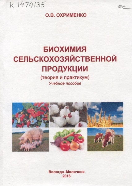 Охрименко О. В. Биохимия сельскохозяйственной продукции (теория и практика) : учебное пособие / О. В. Охрименко ; М-во сел. хоз-ва, Вологод. гос. молочнохоз. акад. им. Н. В. Верещагина, Каф. химии и физики. - Вологда ; Молочное : ВГМХА, 2016. - 458 с. : ил., табл. - ISBN 978-5-98076-200-1.