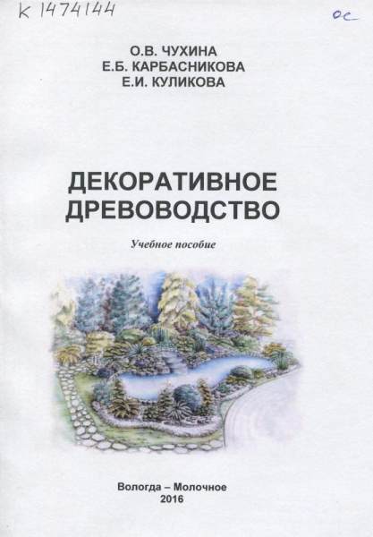 Чухина О. В. Декоративное древоводство : учебное пособие / О. В. Чухина, Е. Б. Карбасникова, Е. И. Куликова ; Вологод. гос. молочнохоз. акад. им. Н. В. Верещагина, Фак. агрономии и лесн. хоз-ва. - Вологда ; Молочное : ВГМХА, 2016. - 169 с. : ил. - ISBN 978-5-98076-201-8.