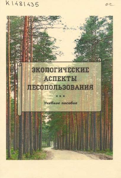 Новоселов А. С. Экологические аспекты лесопользования : учебное пособие / А. С. Новоселов ; М-во образования и науки Рос. Федерации, Вологод. гос. ун-т. - Вологда : ВоГУ, 2016. - 87 с. : ил. - ISBN 978-5-87851-679-2.