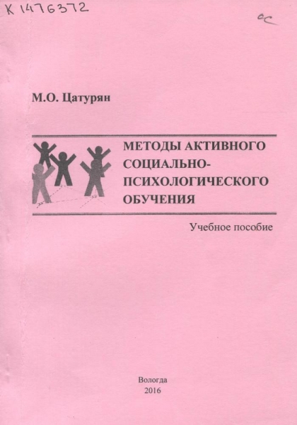 Цатурян М. О. Методы активного социально-психологического обучения : учебное пособие [для студентов бакалавриата, обучающихся по направленияю подготовки «Психолого-педагогическое образование»] / М. О. Цатурян ; М-во образования и науки Рос. Федерации, Вологод. гос. ун-т. - Вологда : ВоГУ, 2016. - 127 с. : ил., фот., табл. - ISBN 978-5-87851-666-2.