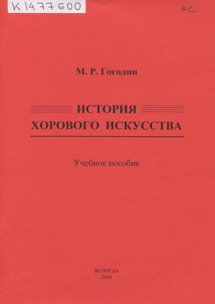 Гоголин М. Р. История хорового искусства : учебное пособие / М. Р. Гоголин ; М-во образования и науки Рос. Федерации, Вологод. гос. ун-т. - Вологда : ВоГУ, 2016. - 71 с. - ISBN 978-5-87851-672-3.