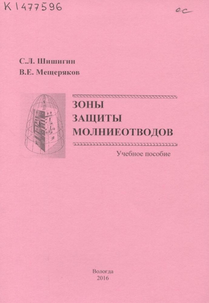 Шишигин С. Л. Зоны защиты молниеотводов : учебное пособие / С. Л. Шишигин, В. Е. Мещеряков ; М-во образования и науки Рос. Федерации, Вологод. гос. ун-т. - Вологда : ВоГУ, 2016. - 79 с. : ил., табл. - ISBN 978-5-87851-659-4.